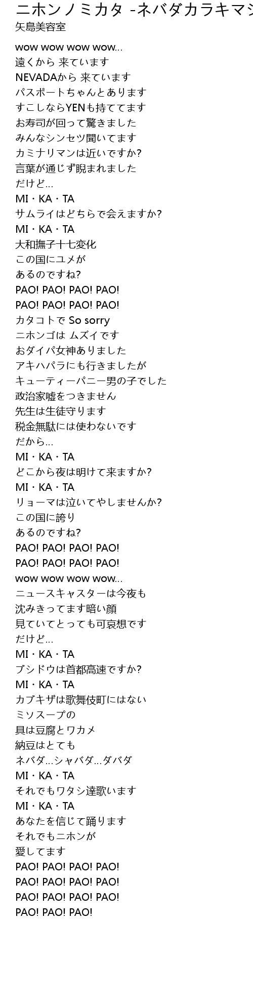 | Song | ニホンノミカタ -ネバダカラキマシタ- |
