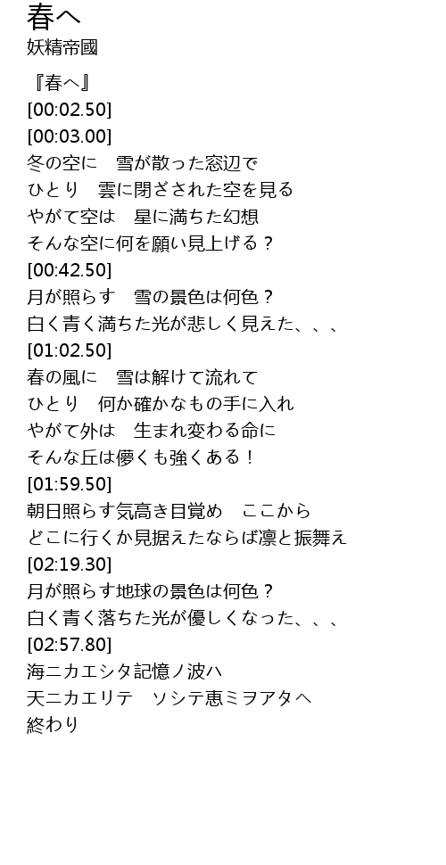 | [00:00.00] | 『春へ』 |
