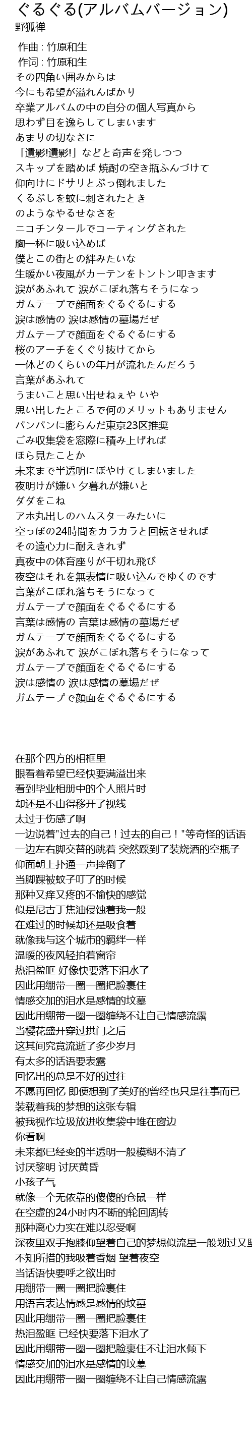| [02:45.950] | 真夜中の体育座りが千切れ飛び |