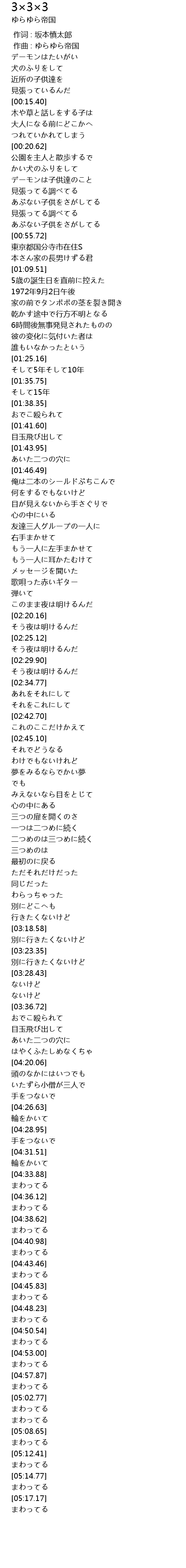 | [00:01.000] | 作曲 : ゆらゆら帝国 |