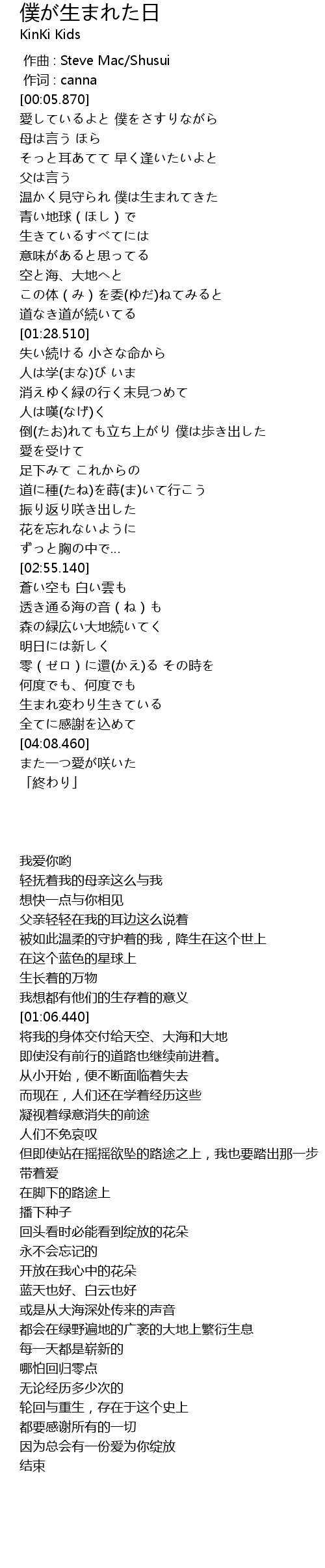| [00:34.060] | 温かく見守られ 僕は生まれてきた |