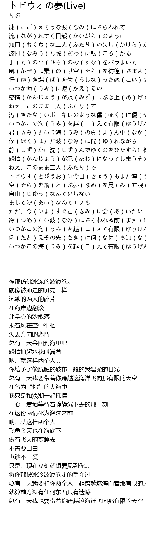 | [02:50.700] | トビウオ(とびうお)は今日(きょう)もまた海(うみ)の底(そこ)で |