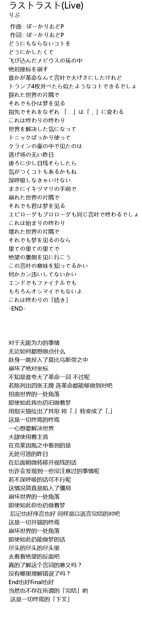 | [03:21.400] | エピローグもプロローグも同じ言叶で终わるでしょ |