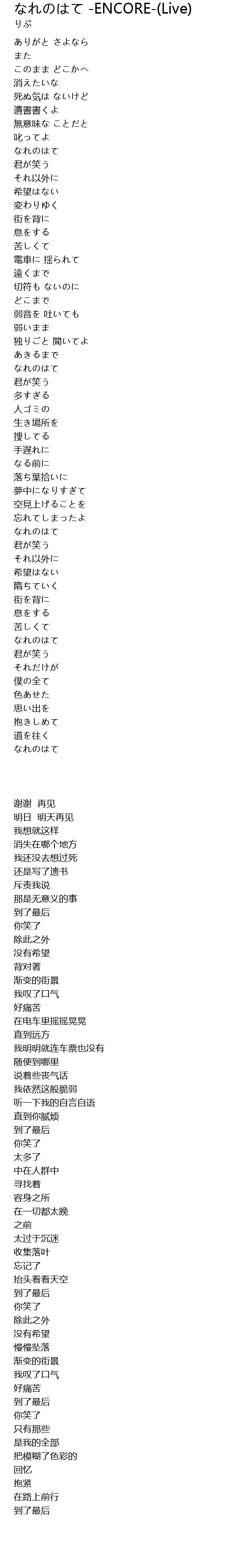 | Song | なれのはて -ENCORE-(Live) |