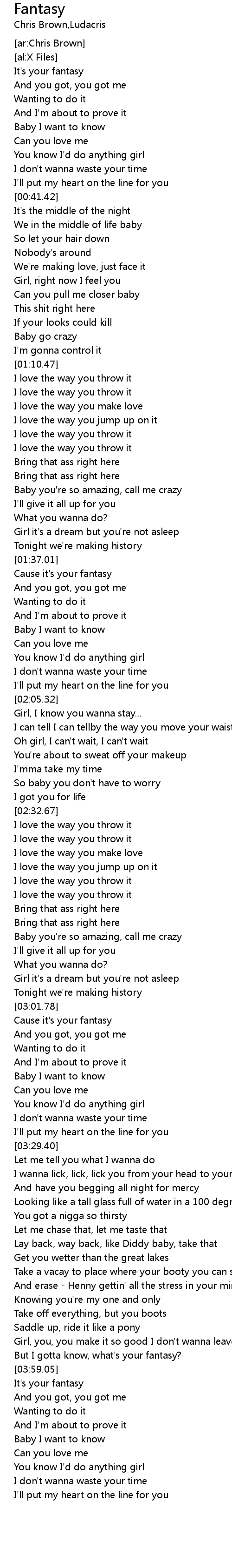 | [03:55.74] | But I gotta know, what's your fantasy? |