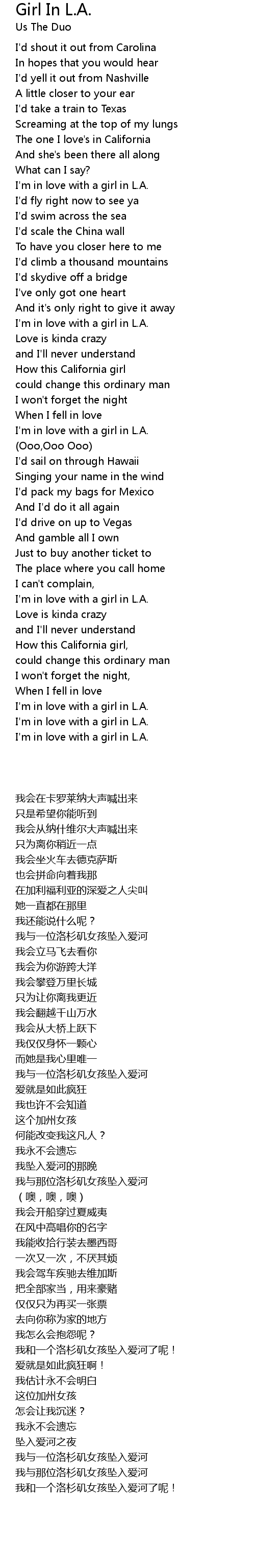 I'm in love with a girl in L.A. |