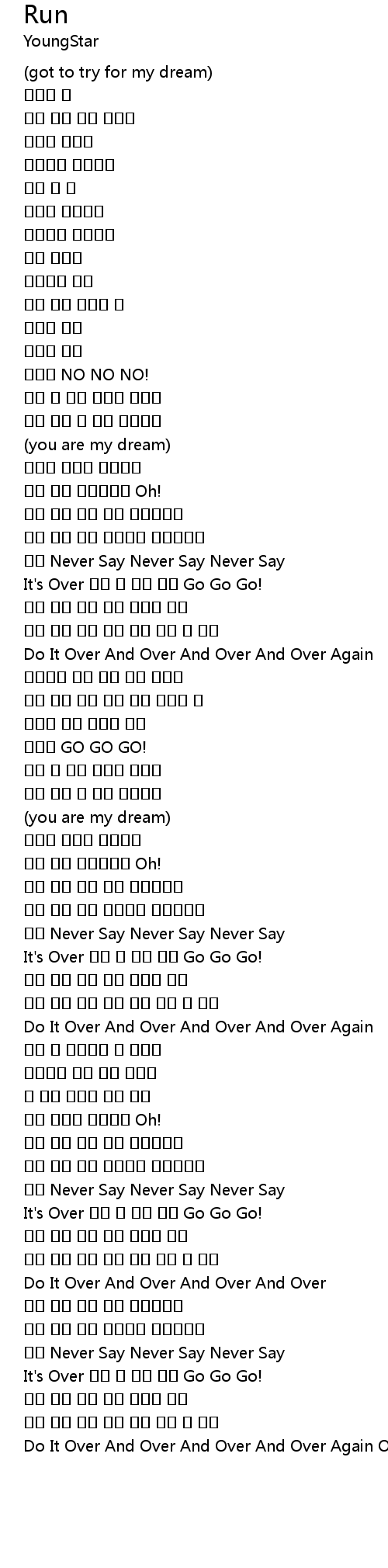 | [03:42.030] | It's Over 포기 할 수는 없어 Go Go Go! |