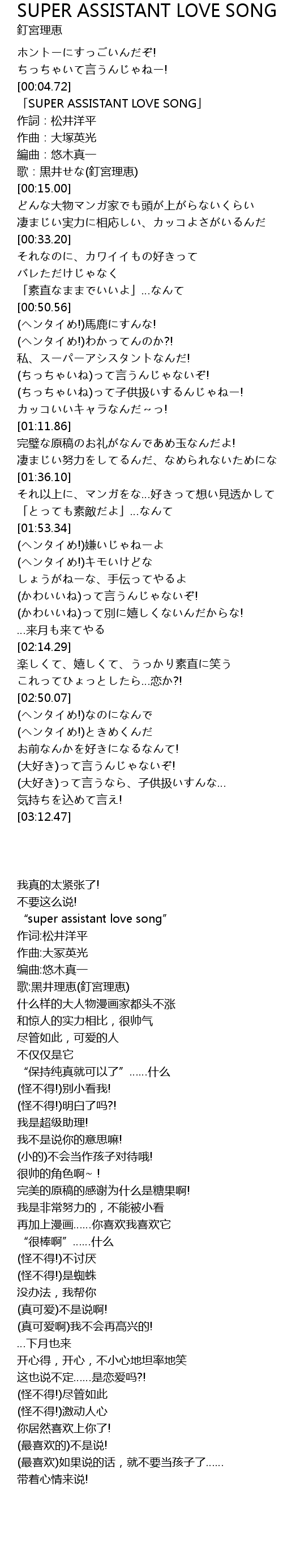 | [00:05.43] | 「SUPER ASSISTANT LOVE SONG」 |
