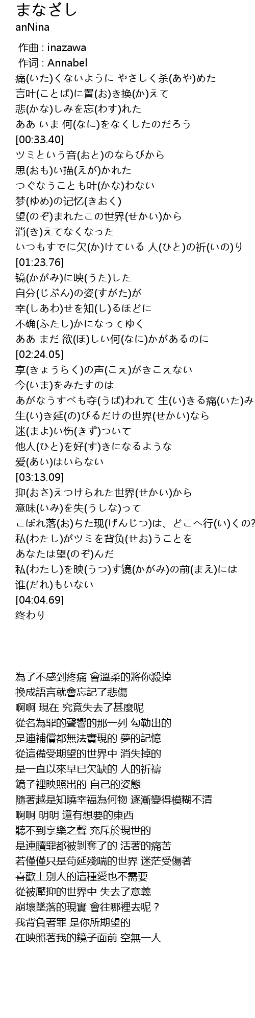 | [03:36.91] | 私(わたし)がツミを背负(せお)うことを あなたは望(のぞ)んだ |