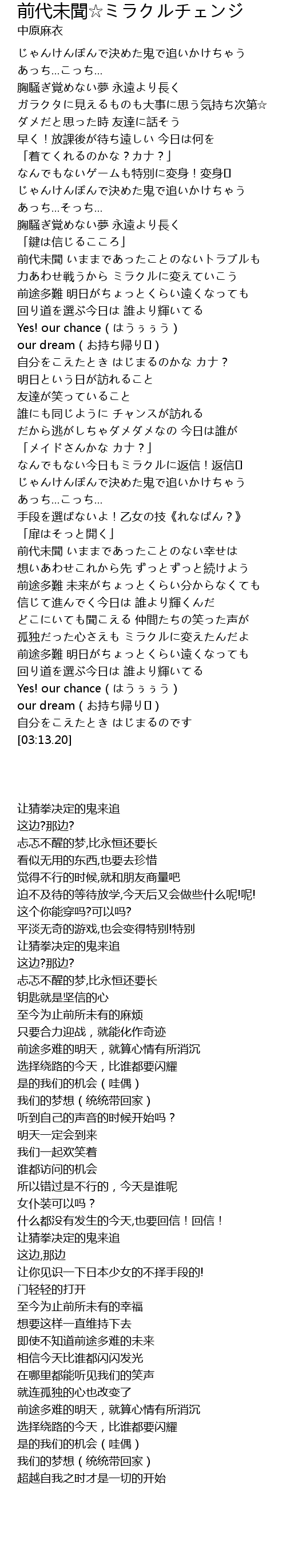 | [02:56.05] | Yes! our chance(はうぅぅう) |