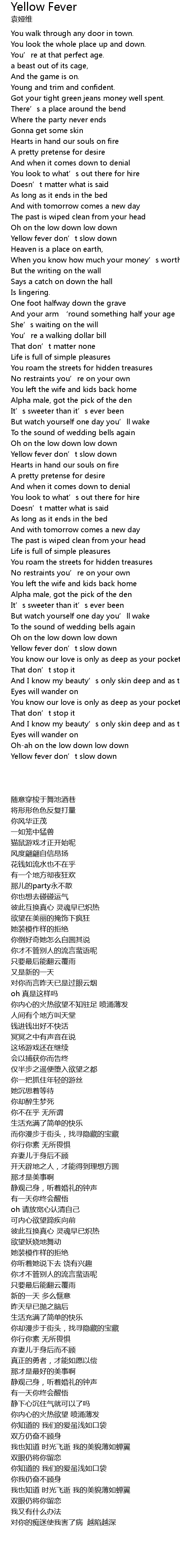 | [02:51.86] | Yellow fever don’t slow down |