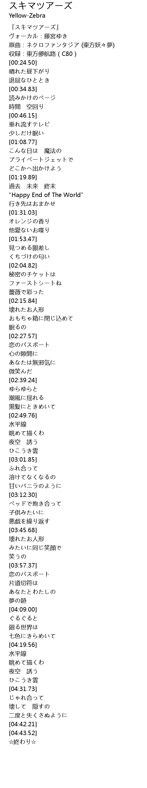 | [00:20.00] | 収録:東方儚航路(C80) |