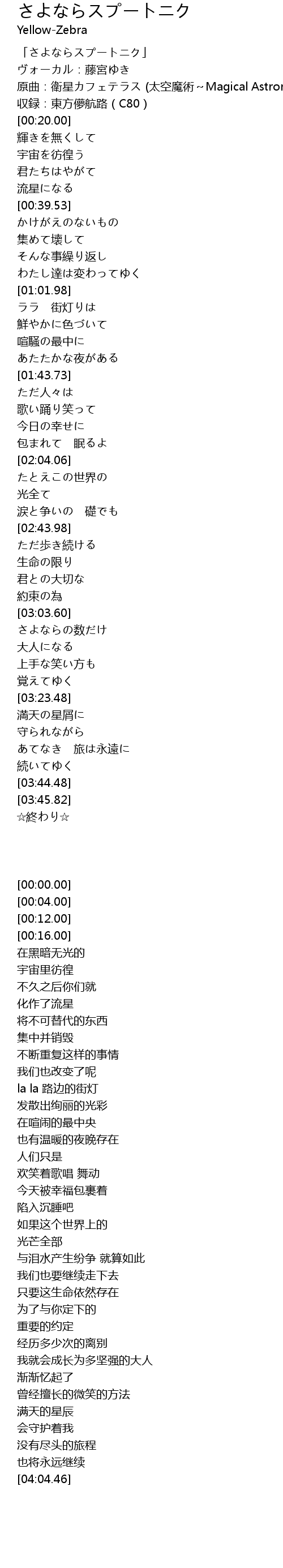 | [00:12.00] | 原曲:衛星カフェテラス (太空魔術~Magical Astronomy) |
