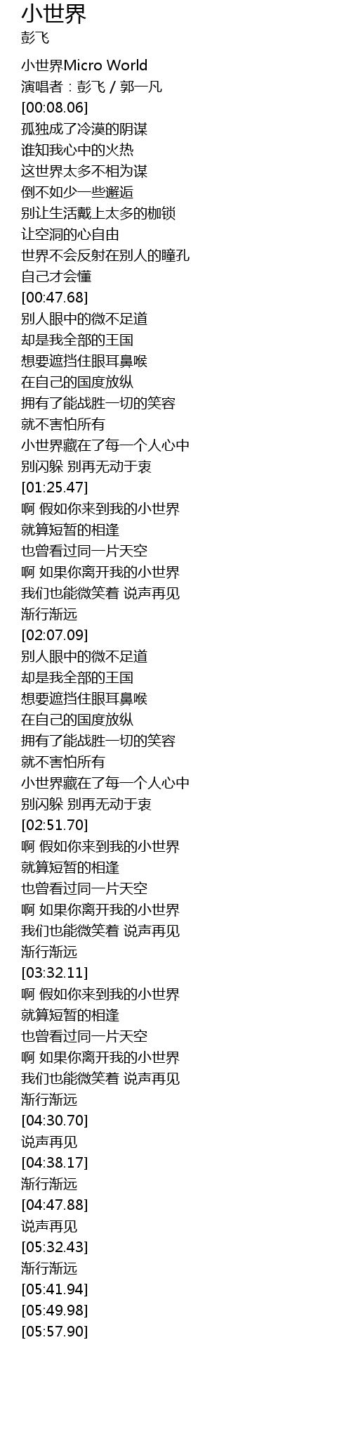 | [00:00.00] | xiǎo shì jiè Micro World |