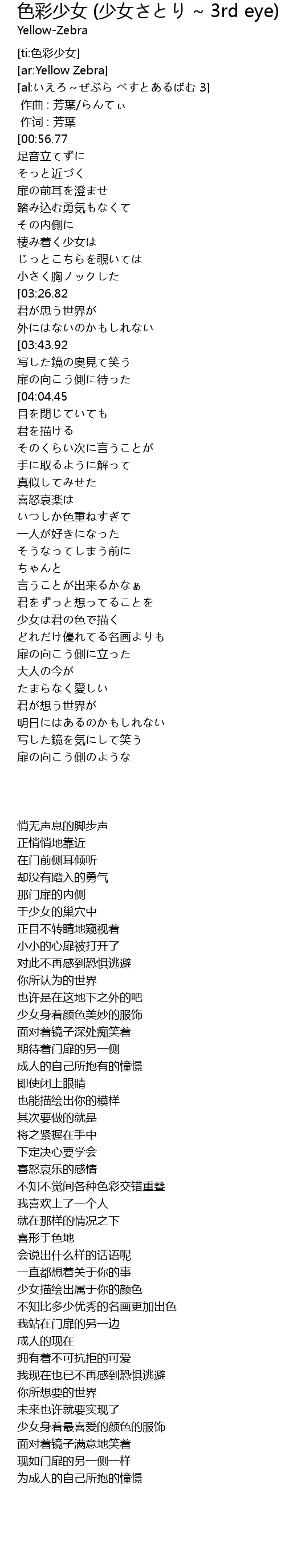| Song | 色彩少女 (少女さとり ~ 3rd eye) |