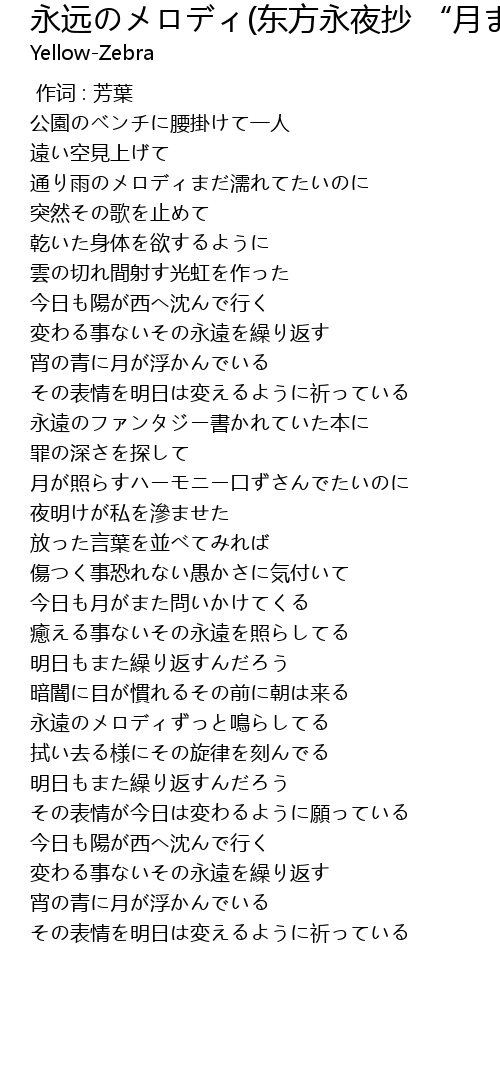 | [03:11.82] | 永遠のメロディずっと鳴らしてる |
