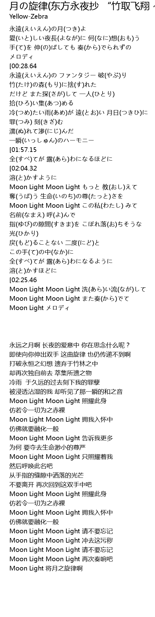 | [01:14.28][01:57.15] | Moon Light Moon Light shēn zhào |