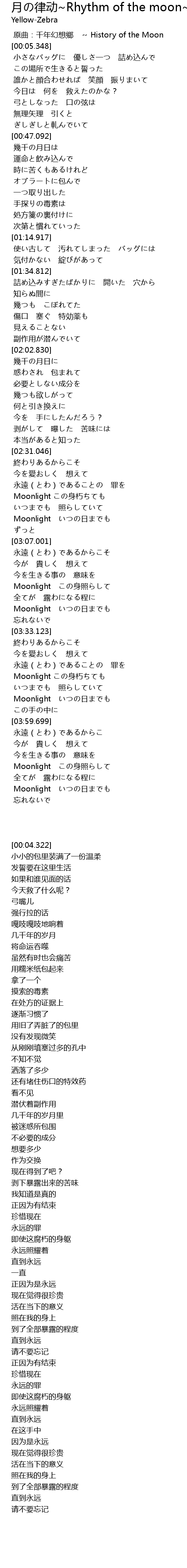 | [04:12.966] | Moonlight shēn zhào |