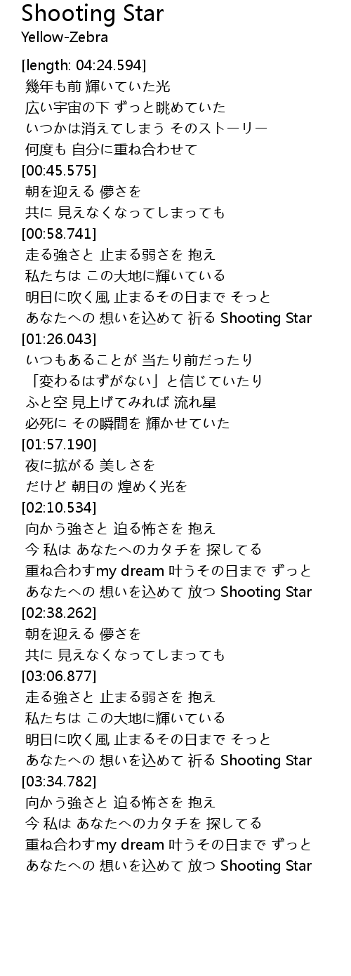 | [03:28.566] | あなたへの 想いを込めて 祈る Shooting Star |