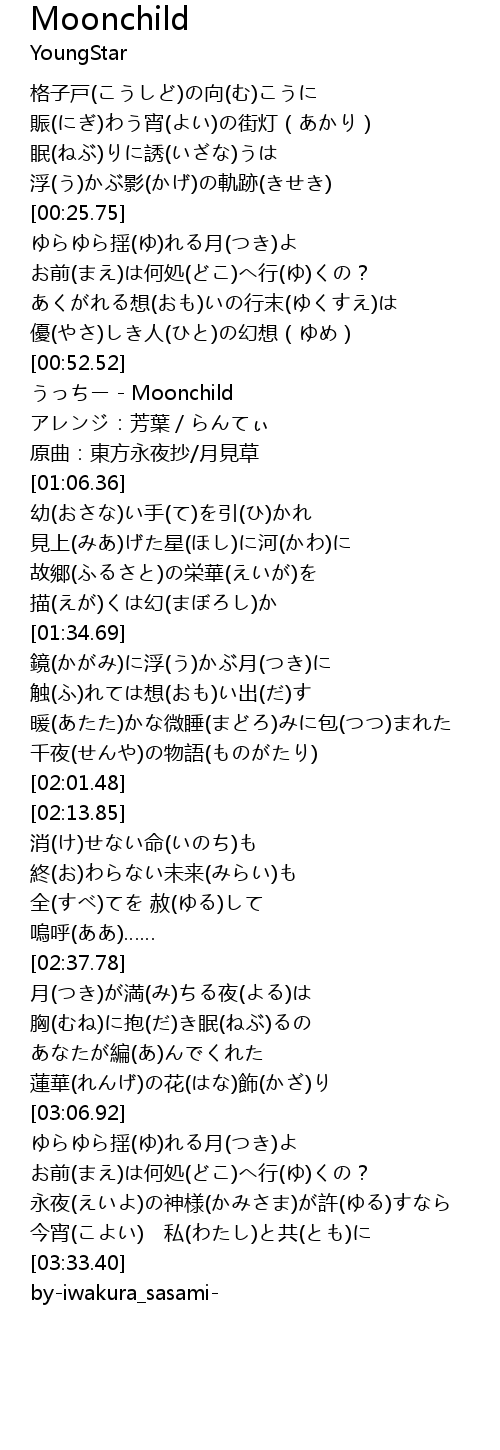 | [01:02.92] | 原曲:東方永夜抄/月見草 |