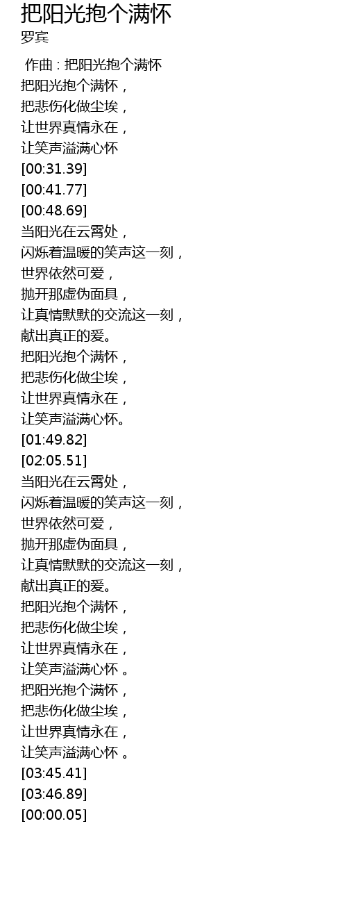 | [00:00.00] | 作曲 : 把阳光抱个满怀 |