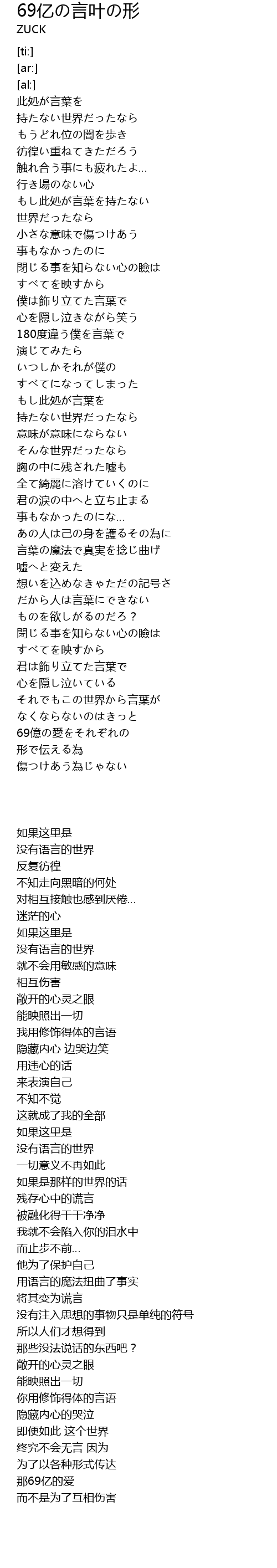 | Song | 69亿の言叶の形 |