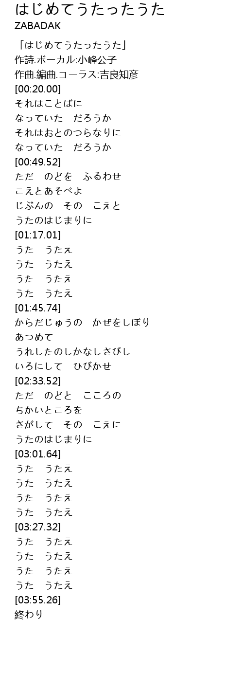 | [00:05.00] | 作詩.ボーカル:小峰公子 |