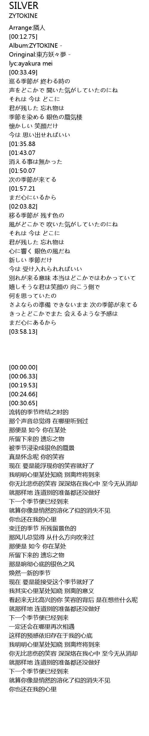| [03:08.10] | xīn xiǎng yín sè fēng |