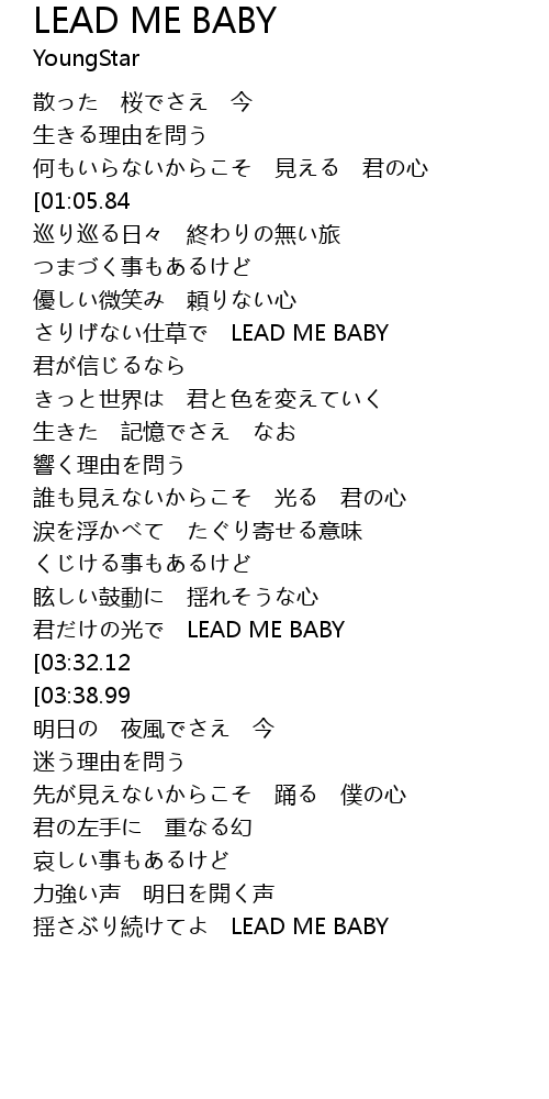 | [02:18.92] | 君だけの光で LEAD ME BABY |