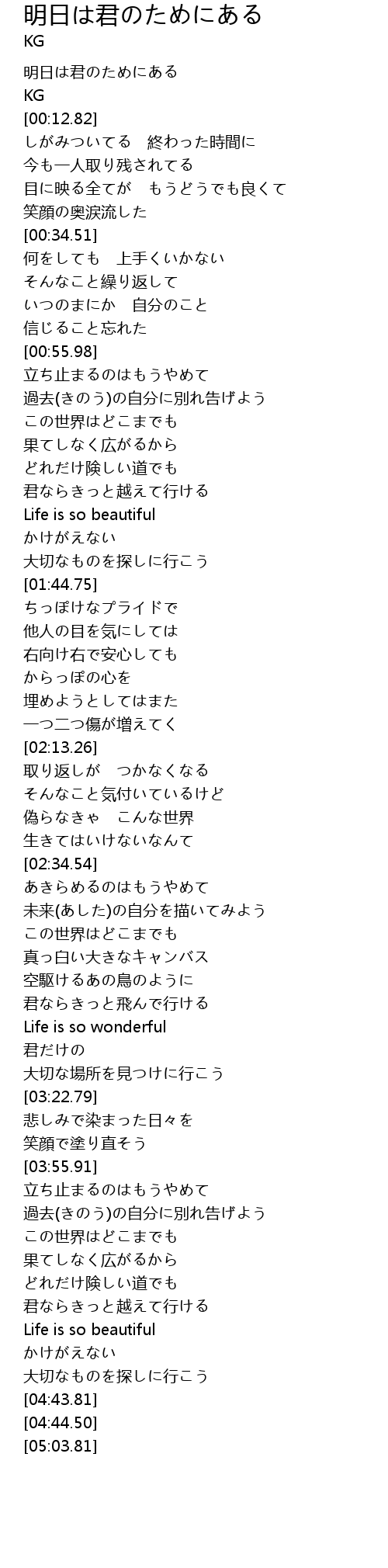 | [04:24.27] | 君ならきっと越えて行ける |