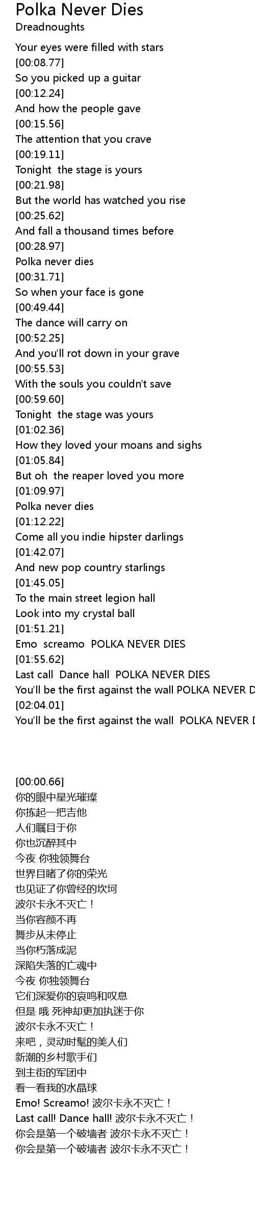 [01:59.18] You'll be the first against the wall POLKA NEVER DIES