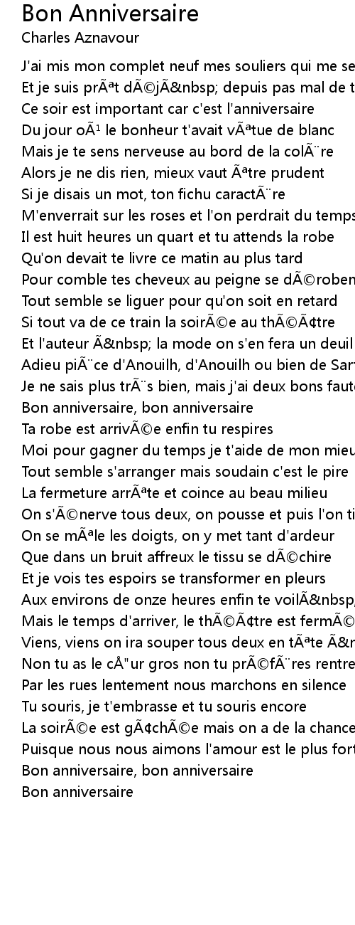 | J'ai mis mon complet neuf mes souliers qui me serrent | |