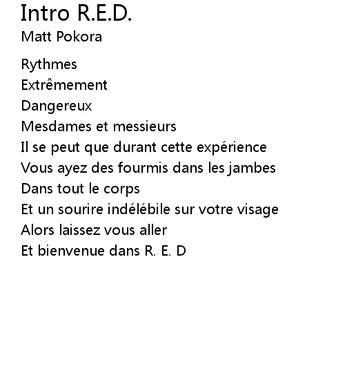 | Et bienvenue dans R. E. D |