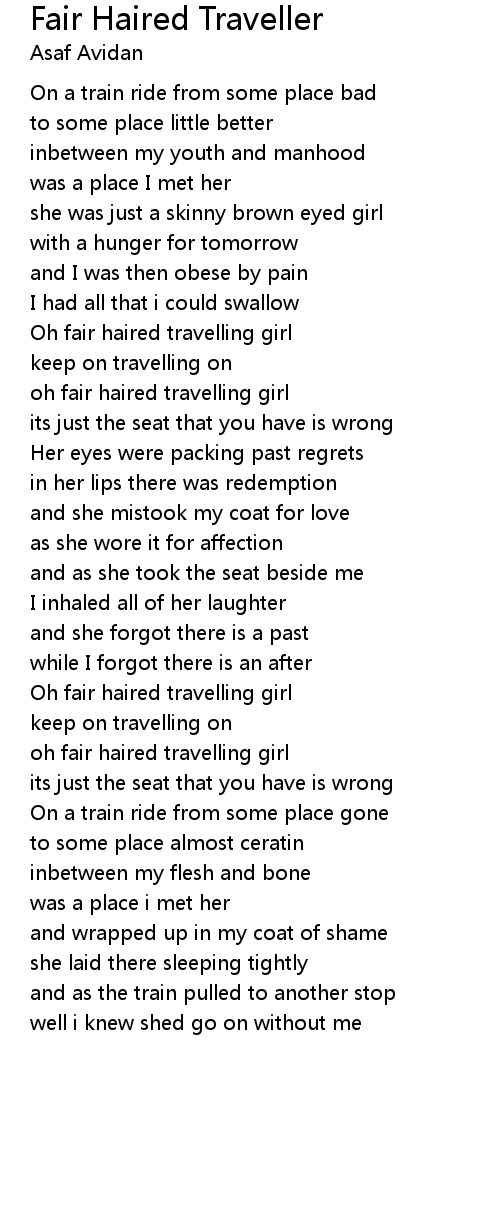 Oh fair haired travelling girl |