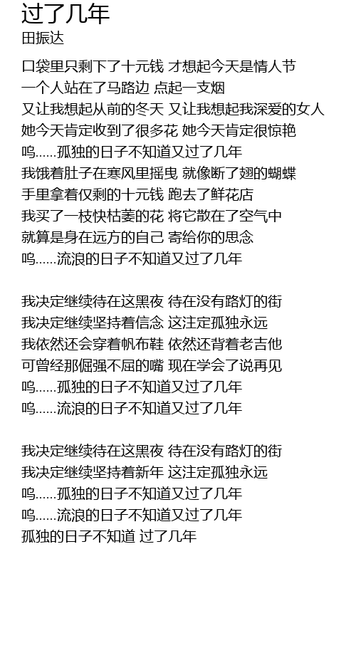 | 孤独的日子不知道 过了几年 |