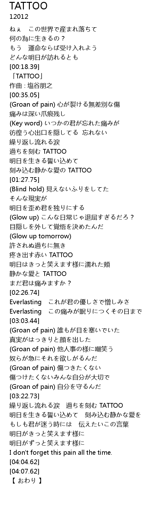 | [00:21.05] | 「TATTOO」 |