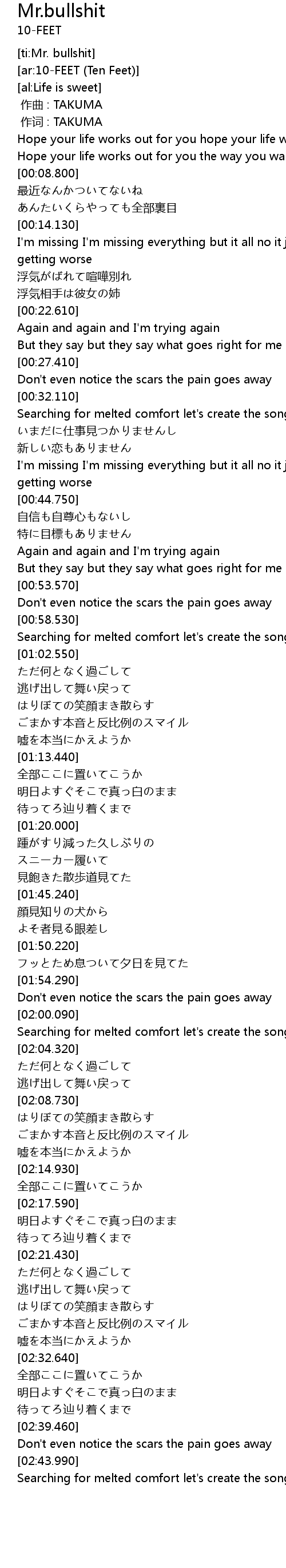 | [02:01.130] | Searching for melted comfort let' s create the song for life |