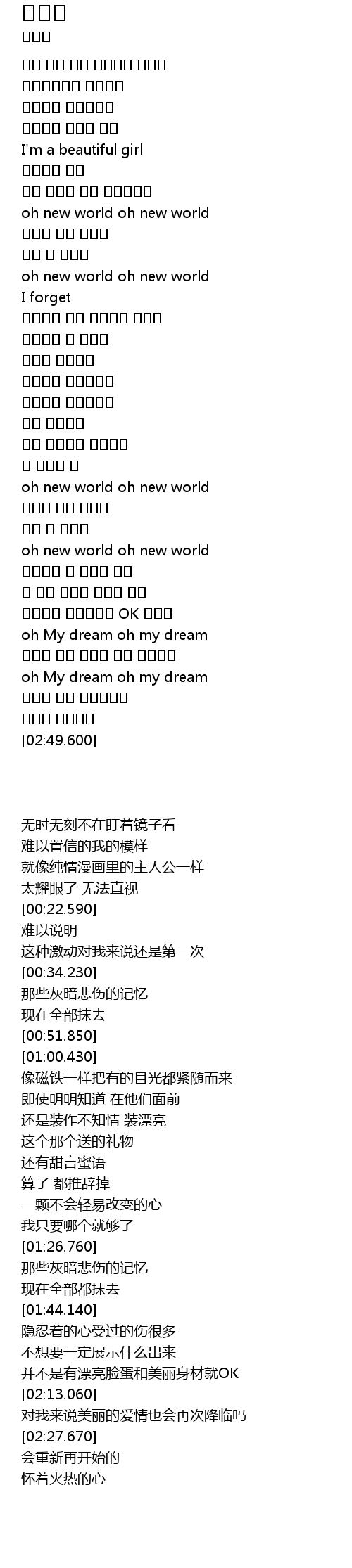 | [00:22.590] | I' m a beautiful girl |