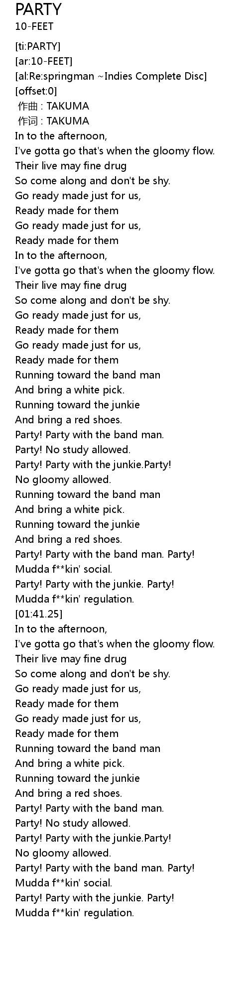 | [02:35.40] | Party! Party with the junkie.Party! |