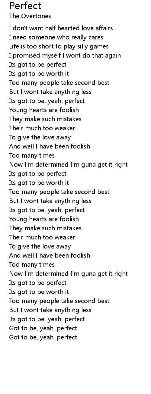 Its got to be perfect |