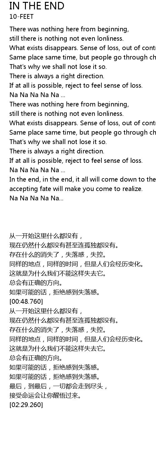 | [02:11.010] | In the end, in the end, it all will come down to the end, |