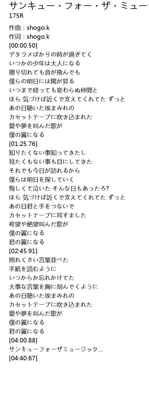 サンキューフォーザミュージック… |