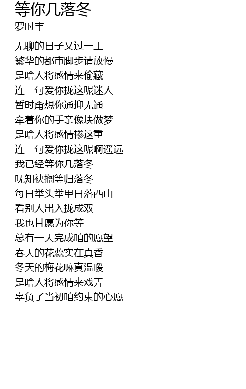 | 呒知袂搁等归落冬 | |
