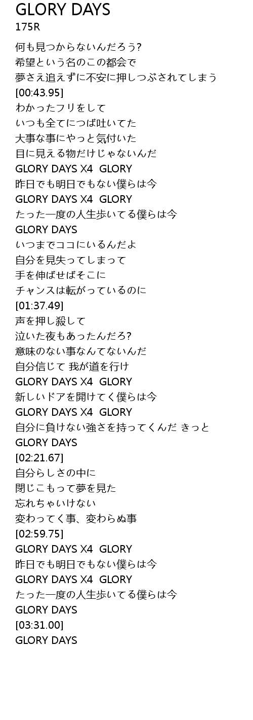| [03:01.09] | GLORY DAYS X4 GLORY |