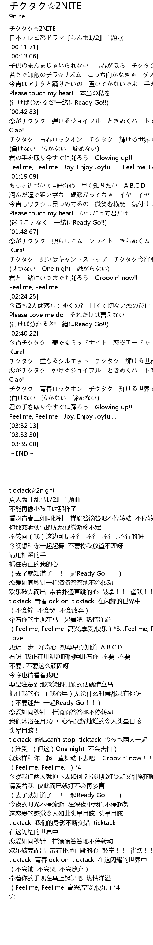 | [00:00.00] | チクタク☆2NITE |