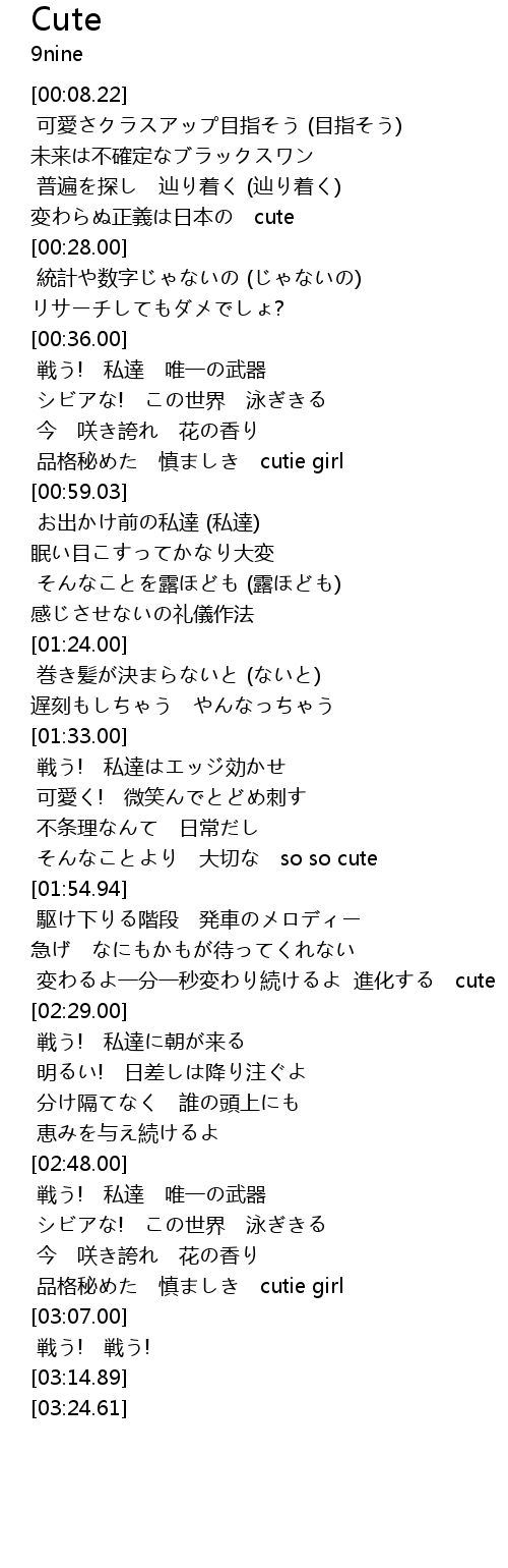 | [02:22.12] | 変わるよ一分一秒変わり続けるよ 進化する cute |