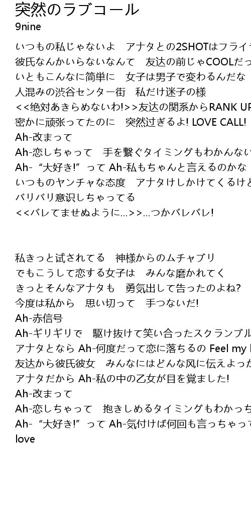 | Ah-改まって Ah-恋しちゃって 抱きしめるタイミングもわかっちゃって | |