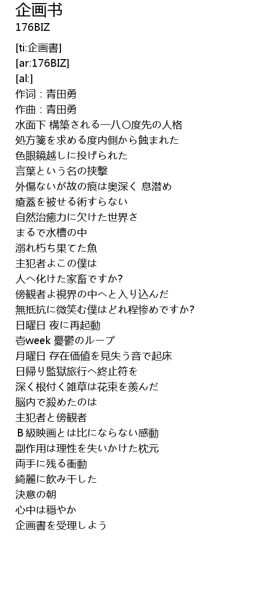 | [01:30.66] | 無抵抗に微笑む僕はどれ程惨めですか? |