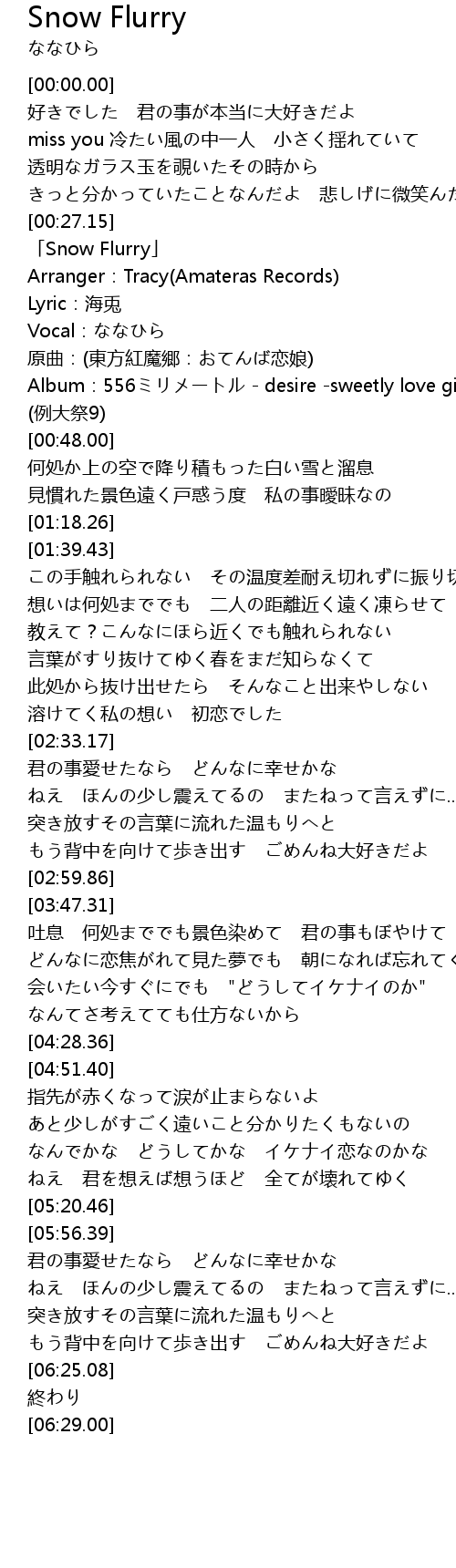 | [00:45.00] | Album:556ミリメートル - desire -sweetly love girls- (例大祭9) |