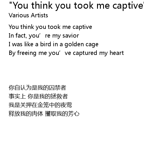 | [00:34.000] | By freeing me you' ve captured my heart |